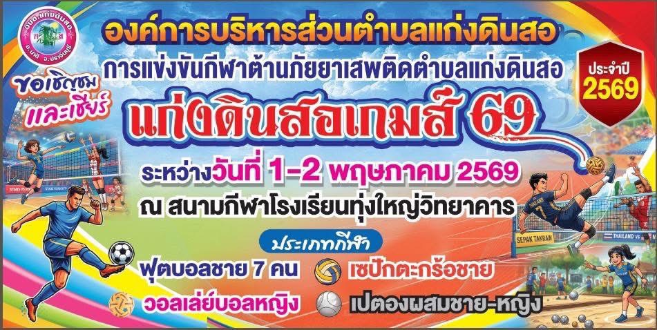 องค์การบริหารส่วนตำบลแก่งดินสอ ขอเชิญชม การแข่งขันกีฬาต้านภัยยาเสพติด ตำบลแก่งดินสอ ประจำปี พ.ศ. 2569 |